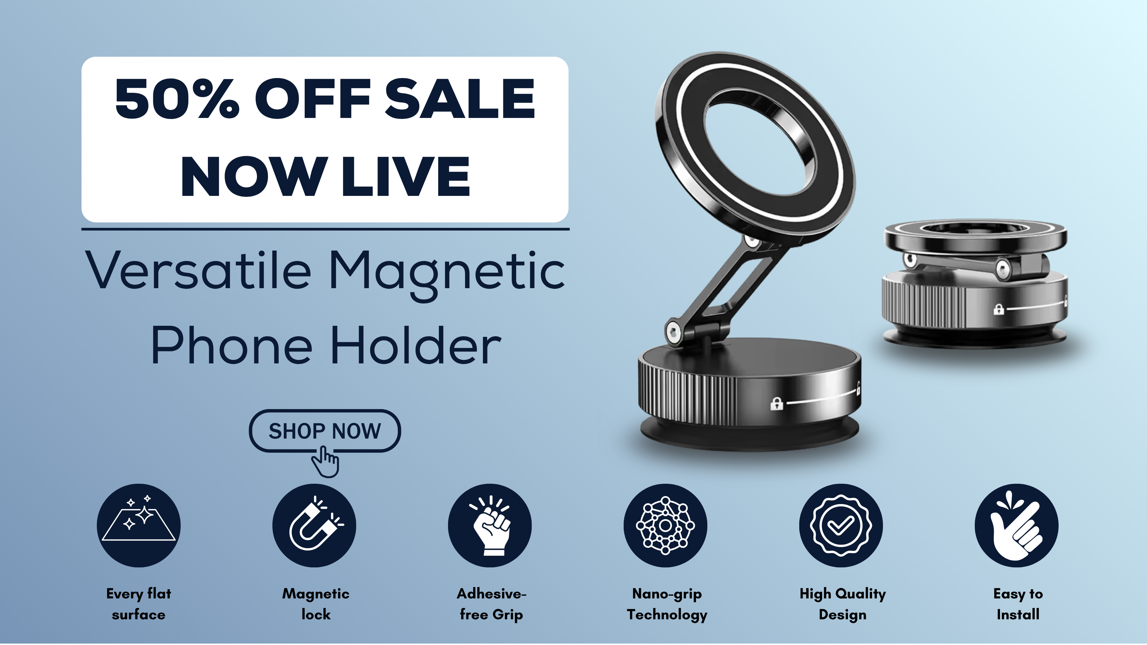 The Versatile Magnetic Phone Holder provides a secure grip on dashboards, mirrors, vanities, desks, and walls. Designed for multifunctional use beyond the car windscreen, it adapts seamlessly to your lifestyle.