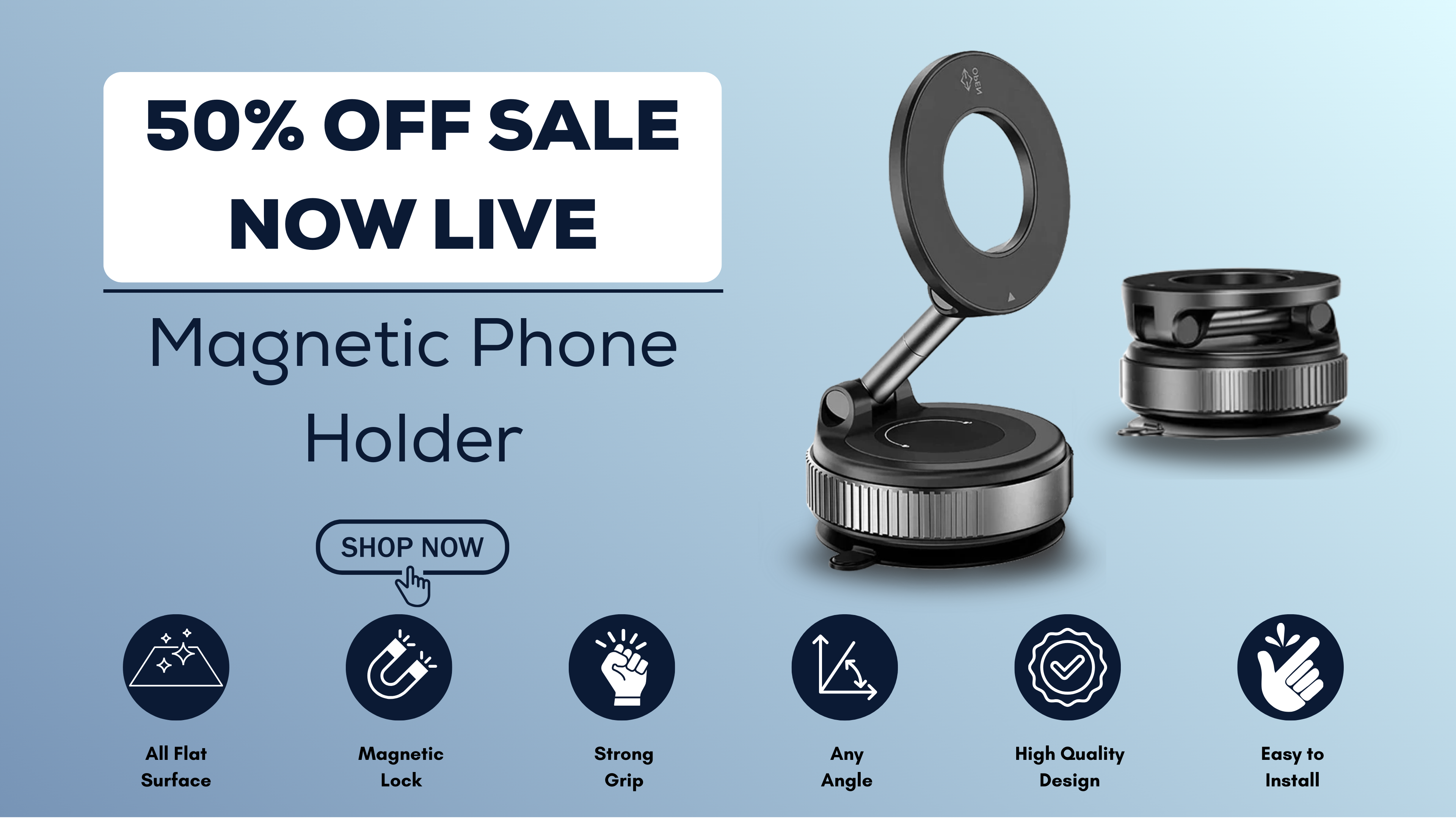 The Magnetic Phone Holder holds your device securely in cars, desks, gyms & more — compatible with all devices